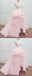 Halter Lace High Low Pink Organza Long Evening Prom Dresses, Cheap Cus