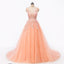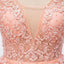Sexy Backless V Neckline Lace A line Peach Long Evening Prom Dresses, Popular Cheap Long 2018 Party Prom Dresses, 17227