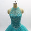 Ball Gown Turquoise Halter Beaded A-line Long Evening Prom Dresses, Cheap Sweet 16 Dresses, 18356