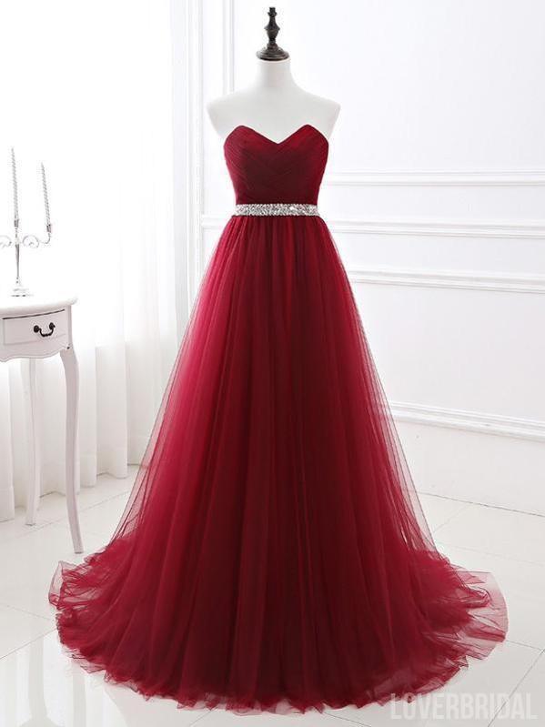 Sweetheart Red A-line Simple Long Evening Prom Dresses, Sparkly Sweet 16 Dresses, 18345