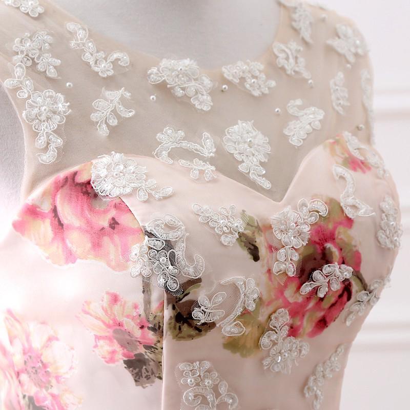 Unique Flower Fabric A-line Bateau Lace Long Evening Prom Dresses, Spa
