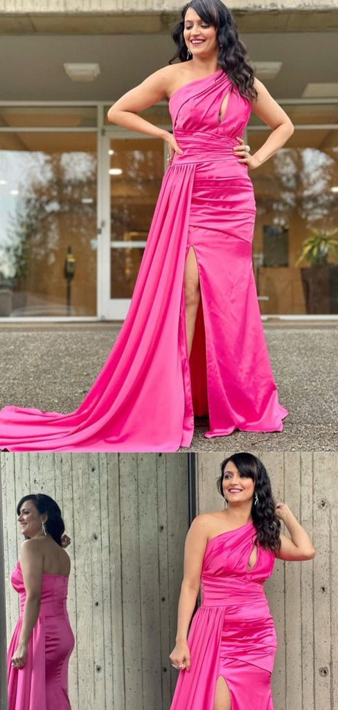 Sexy Hot Pink Mermaid One Shoulder Maxi Long Party Prom Dresses, Eveni