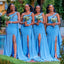 Blue Mermaid One Shoulder High Slit Cheap Long Bridesmaid Dresses,WG1361