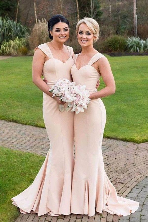 Champagne Cap Sleeves Mermaid Cheap Long Bridesmaid Dresses Online, WG343