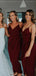 Dark Red Spaghetti Straps Tea Length Bridesmaid Dresses Online, Cheap Bridesmaids Dresses, WG730