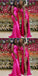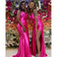 Hot Pink Mermaid Spaghetti Straps Side Slit Cheap Long Bridesmaid Dresses,WG1374