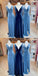Mismatched Blue A-line V-neck Cheap Long Bridesmaid Dresses,WG1396