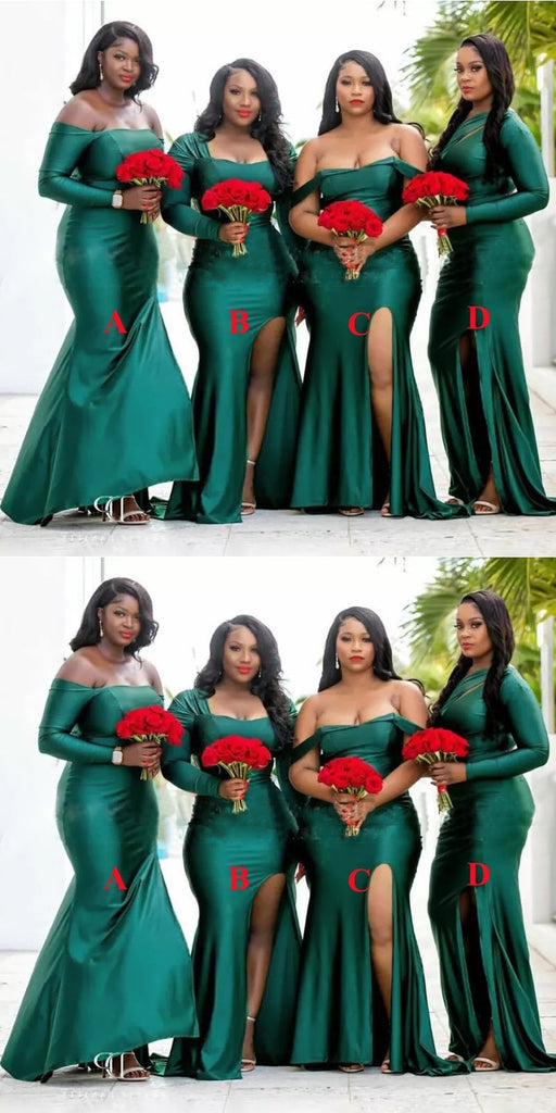 Mismatched Mermaid Emerald Green Cheap Long Bridesmaid Dresses,WG1167