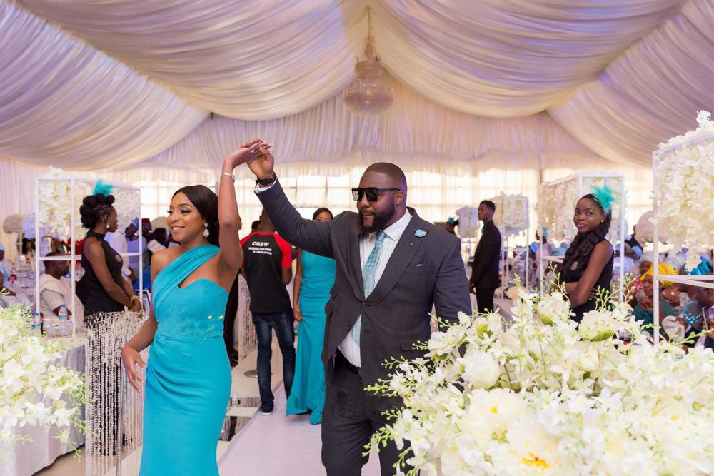 Stand up straight and measure from the the center of the collarbone,down to where the hem of the dress should hit(excluding any train).