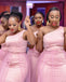Pink Mermaid One Shoulder Side Slit Cheap Long Bridesmaid Dresses,WG1400