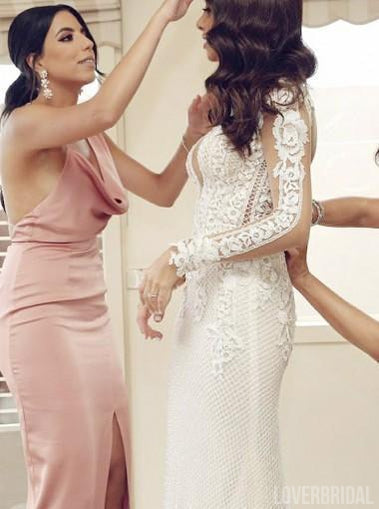 Sexy Pink Mermaid Side Slit Long Bridesmaid Dresses Online, WG301