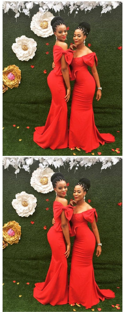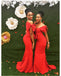 Sexy Red Mermaid Off Shoulder Maxi Long Bridesmaid Dresses For Wedding,WG1569