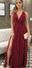 Sexy Side Slit Dark Red Chiffon Cheap Bridesmaid Dresses Online, WG767
