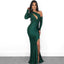 Unique Emerald Green Mermaid One Shoulder Side Slit Cheap Bridesmaid D
