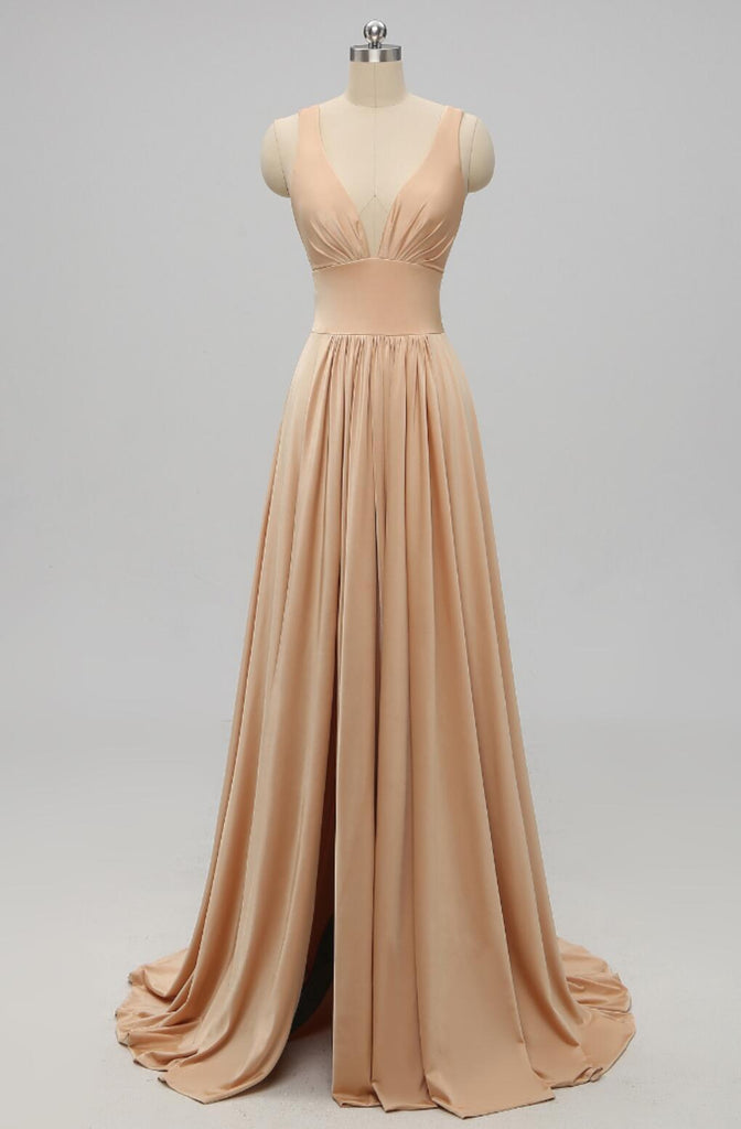 V Neck Side Slit Cheap Long Bridesmaid Dresses Online, WG292