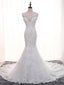 Lace Scoop Neckline Long Tull Tail Mermaid Wedding Bridal Dresses, Cheap Custom Made Wedding Bridal Dresses, WD280