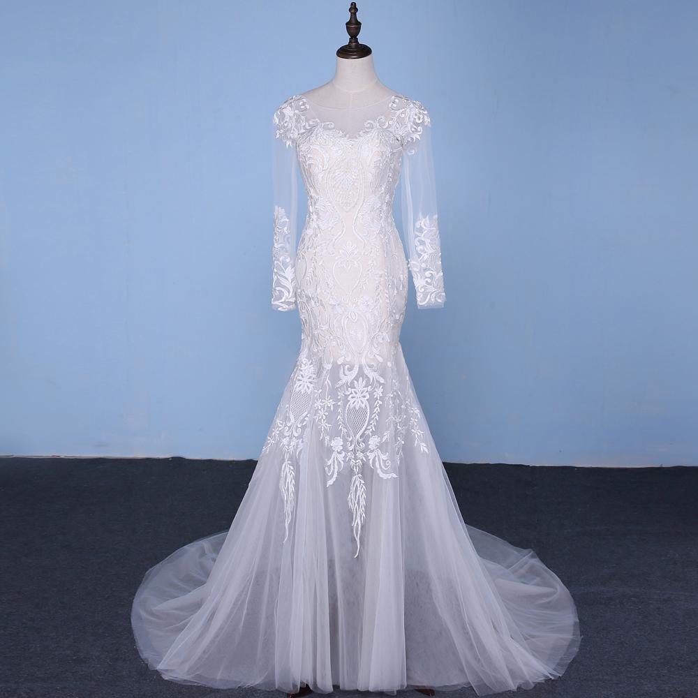 Long Sleeve Detachable Skirt Lace Mermaid Wedding Bridal Dresses, Cheap Custom Made Wedding Bridal Dresses, WD275