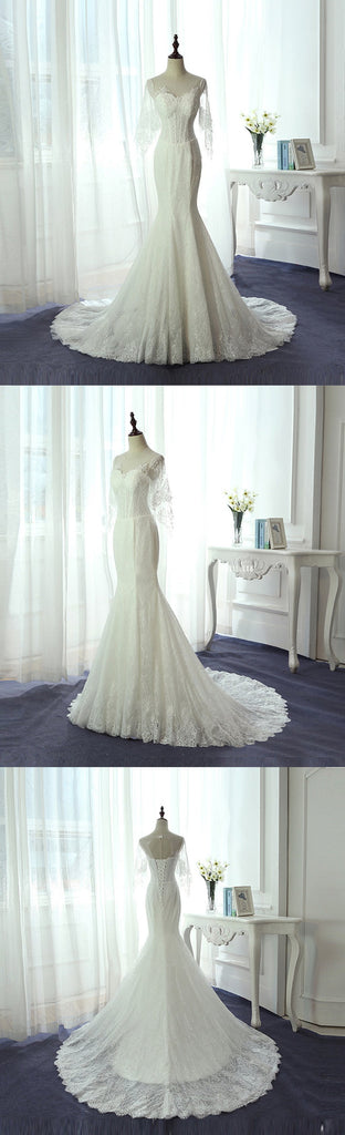 Long Sleeve Lace Mermaid Sweet Heart Wedding Bridal Dresses, Custom Made Wedding Dresses, Affordable Wedding Bridal Gowns, WD237