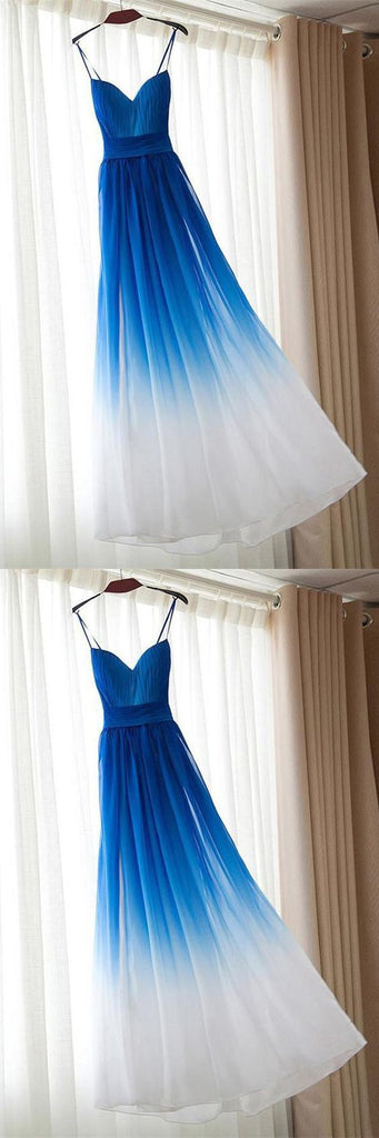 Ombre Blue Chiffon Sweetheart Neckline Long Evening Prom Dresses, Popular Cheap Long Custom Party Prom Dresses, 17314