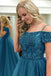 Sexy Off Shoulder Backless Teal A line Long Evening Prom Dresses, Popular Cheap Long Party Prom Dresses, 17311