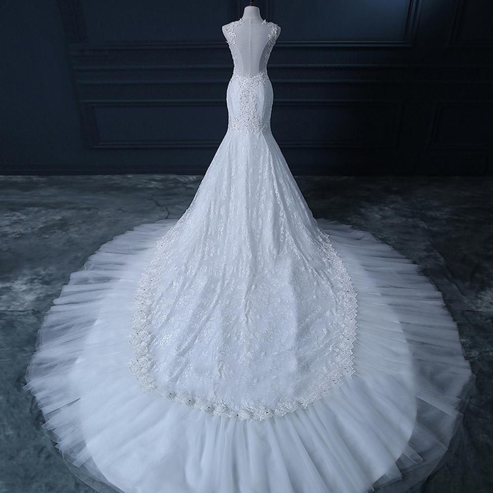 Sexy See Through Lace Beaded Mermaid Wedding Bridal Dresses, Affordable Custom Made Wedding Bridal Dresses, WD265