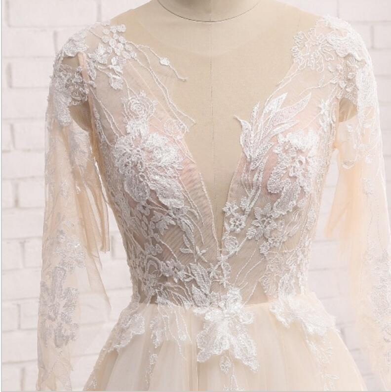 Sexy See Through Long Sleeve Lace Wedding Bridal Dresses, Custom Made Wedding Dresses, Affordable Wedding Bridal Gowns, WD238
