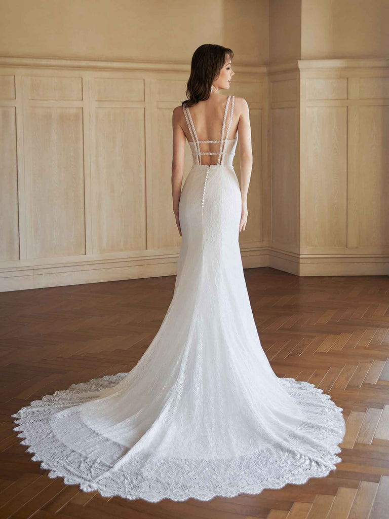 Sexy Mermaid V-neck Open Back Handmade Lace Wedding Dresses,WD797