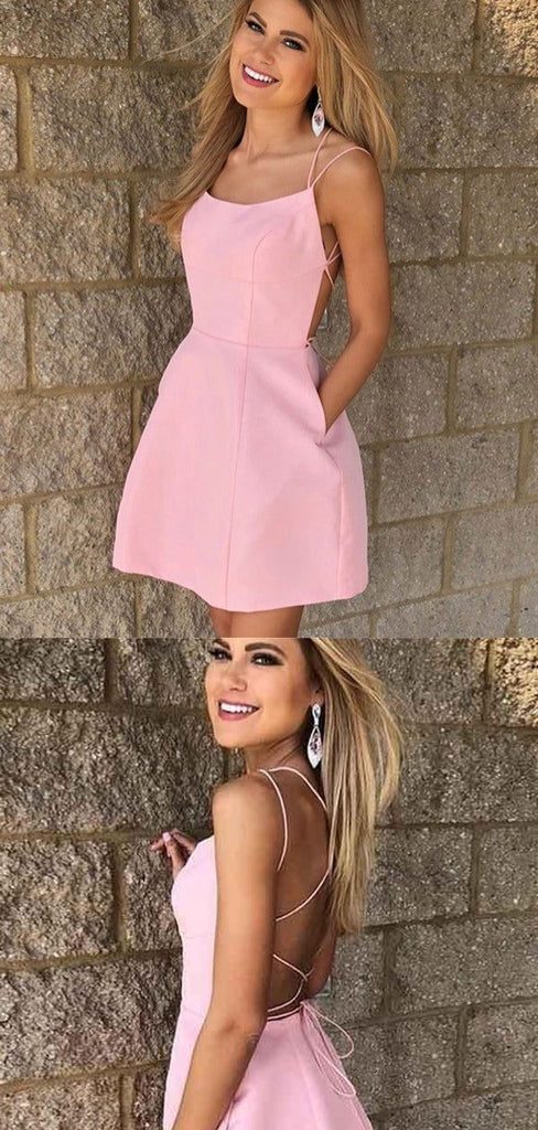 Simple Pink A-line Spaghetti Straps Mini Short Prom Homecoming Dresses Online,CM990