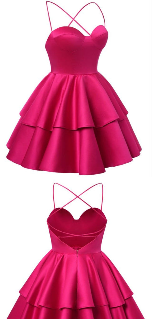 Simple Red Spaghetti Straps Mini Short Prom Homecoming Dresses Online,CM1005
