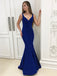 Simple Royal Blue Mermaid Long Evening Prom Dresses, 17542