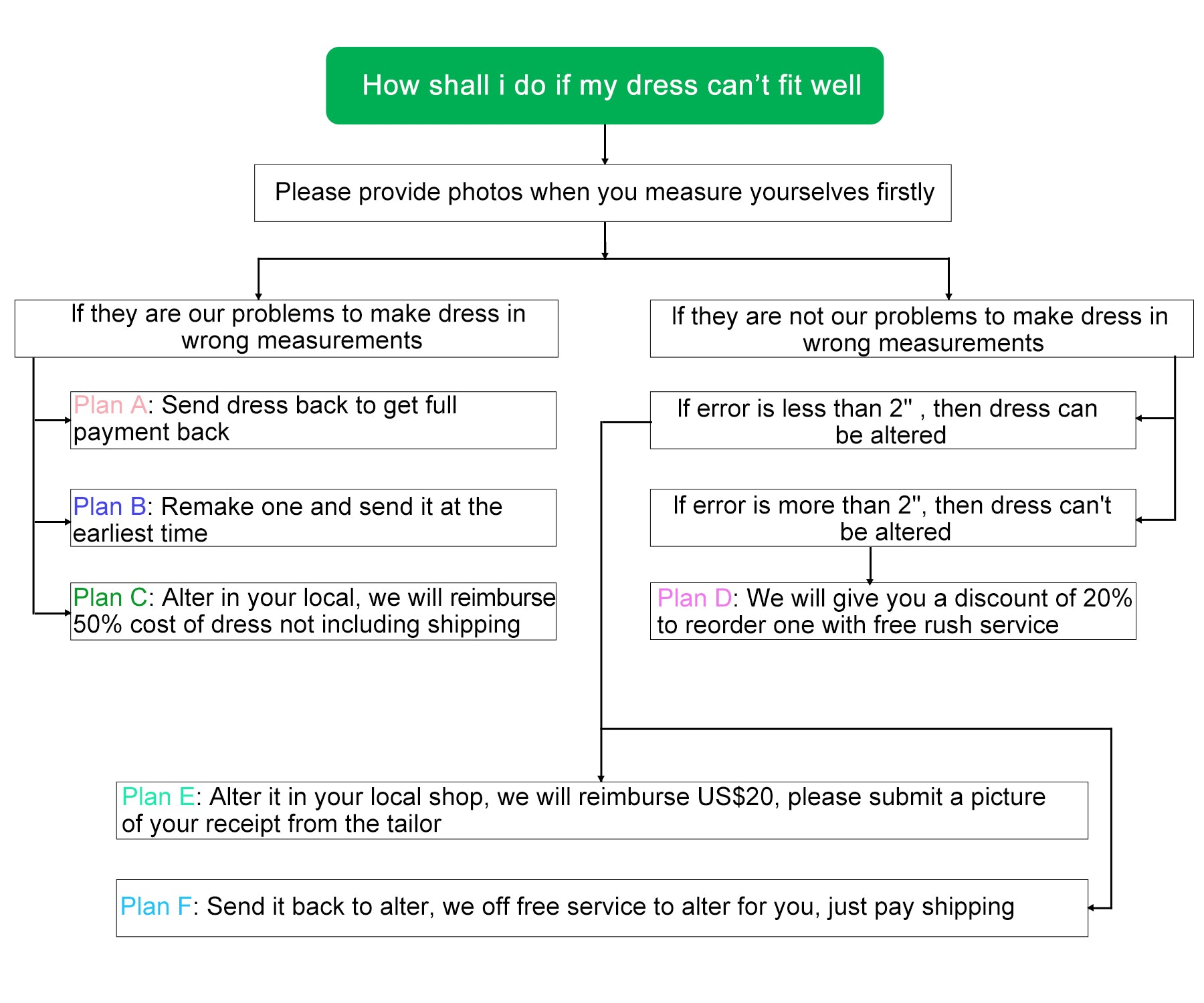 We totally understand your situation, although we made your order according to your measurements, it is only basic custom sizing, the problems maybe caused by inaccurate measurements measured by your side or wrongly sewed by our side, they are manual measurements and all of our dresses are handmade after all, so It’s normal for the slight difference. To provide additional assistance and help, we offer some alteration reimbursements to help achieve a closer fit. We'll cover up to a certain amount. Yes, It’s so easy for you to get the reimbursements and adjustments.